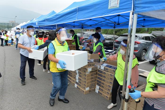 경기 포천시 지역사회보장협의체의 14개 읍·면·동보장협의체는 16일 무한돌봄희망복지센터와 공동주관 아래 추석맞이 나눔행사를 진행했다. 이날 ‘추석선물 꾸러미’를 직접 포장해 지역내 저소득층 700가구에 전달했다. 사진은 협의체 위원들이 추석선물 꾸러미를 포장하고 있는 모습. (사진제공=포천시청)