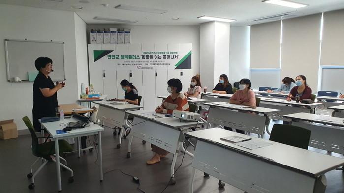 경기 연천군자원봉사센터가 15일 군 종합복지관 4층 학습 동아리실에서 정리수납 전문가 자원봉사 양성과정 교육을 시작했다. 전문 강사의 강의로 진행되는 이번 교육은 총 8회 과정으로 오는 30일까지 이어진다. 사진은 교육 진행 모습. (사진제공=연천군청)