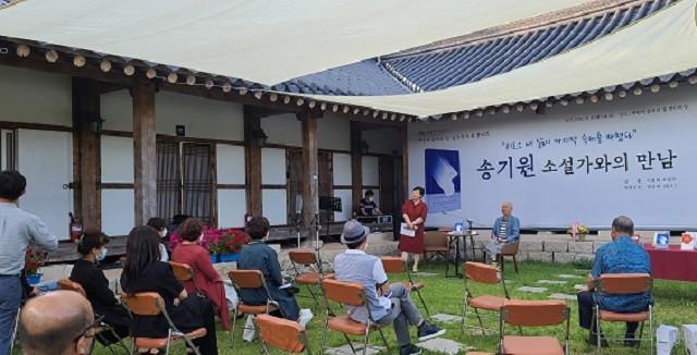 | ▲ 지난 8일 해남읍 연동리 소재 백련재 문학의 집에서 열린 송기원작가 북콘서트 진행 모습 / 사진=해남군 제공 |