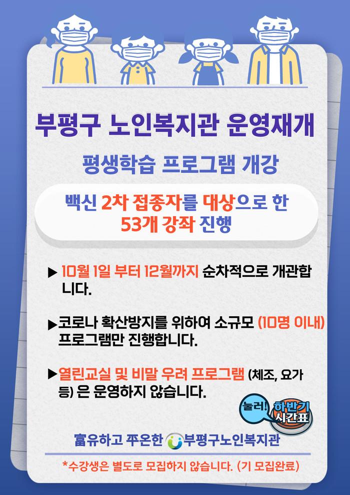 | ▲ 복지관 대면 프로그램 운영재개 안내문. (사진제공=인천 부평구청) |