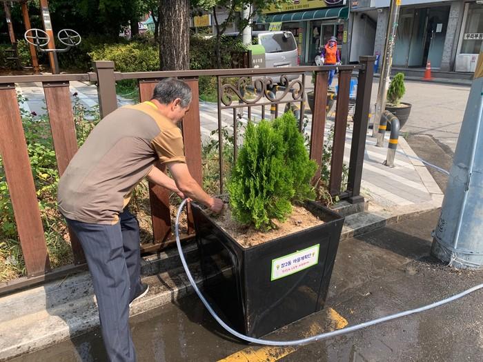 | ▲ 마을관리사가 동네화분에 물을 주고 있다. (사진제공=도봉구청) |