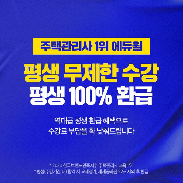 [시민일보 = 여영준 기자]종합교육기업 에듀윌(대표 박명규)은 주택관리사 자격증 시험을 준비하는 수험생을 위해‘100% 환급 평생회원반’을 마련하고 수강생을 모집한다.