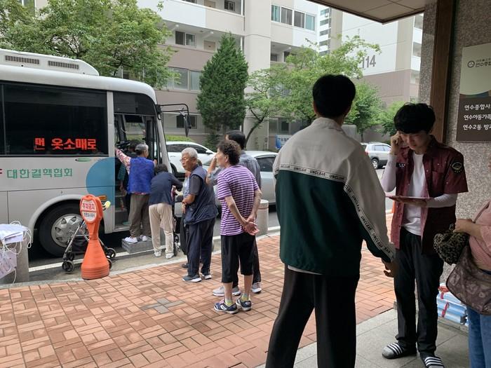 최근 인천 연수구보건소는 결핵 고위험군인 취약계층을 대상으로 결핵을 조기 발견하고 치료하기 위한 결핵검진을 실시했다. 이번 검진은 대한결핵협회 인천지부 주관으로 사회복지시설 7개 기관 280명을 대상으로 이동 결핵검진차량을 이용해 실시됐다. 사진은 주민들이 검진을 받기 위해 기다리고 있는 모습. (사진제공=연수구청)