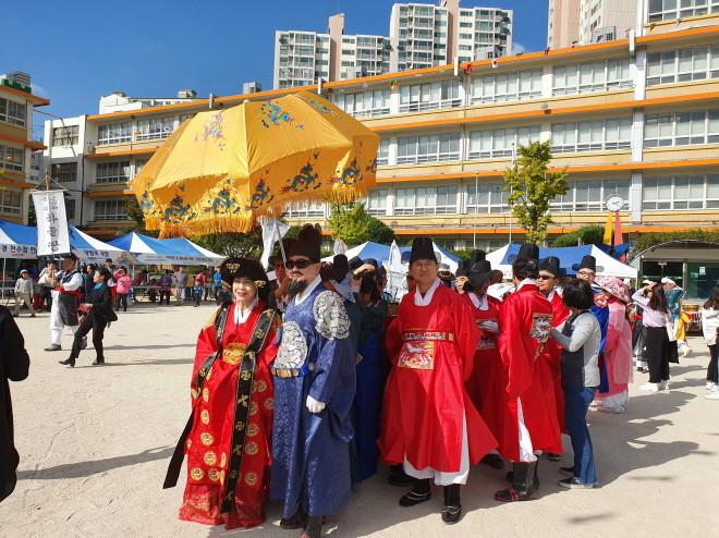 서울 도봉구 창5동은 최근 창동초등학교 운동장에서 지역주민 등 약 8000여명이 모인 가운데 ‘창5동 제1회 명랑운동회 및 제12회 창오가족한마당 축제’를 개최했다. 사진은 참여자 150여명이 조선시대 복장으로 어가행렬을 재현하는 모습. (사진제공=도봉구청)