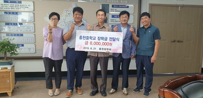 경기 여주시 흥천장학회는 21일 흥천면사무소에서 권병렬 면장을 비롯한 본 장학회 임원 등이 참석한 가운데 장학금을 전달했다. 선발된 장학생은 흥천중학교 전교생 31명이며, 29만원씩 균등 지급될 예정이다. 사진은 기념촬영을 하는 모습. (사진제공=여주시청)