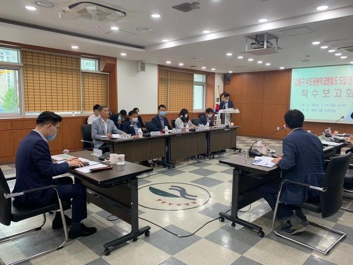| ▲ 지난 10일 강동구청 3층 소회의실에서열린 ‘수도권광역급행철도(GTX-D) 도입 연구용역 착수보고회’ 진행 모습. (사진제공=강동구청) |