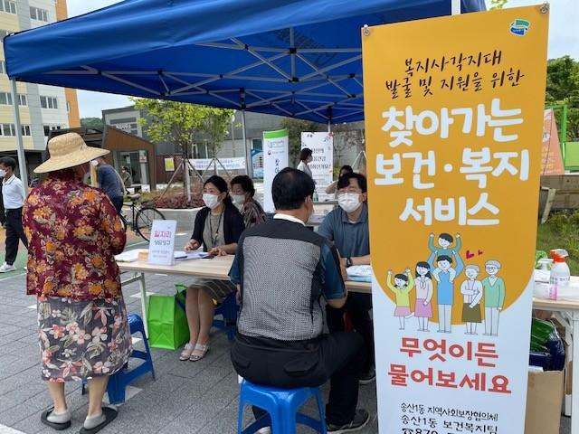 경기 의정부시 송산1동은 최근 고산종합사회복지관, 의정부시자살예방센터, LH의정부권주거복지지사와 함께 고산동 정음마을2단지에서 복지사각지대 발굴 및 지원을 위한 '찾아가는 복지상담'을 진행했다. 사진은 주민들이 상담을 하고 있는 모습. (사진제공=의정부시청)