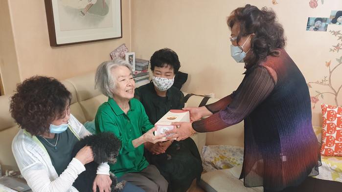 서울 광진구가 6월 호국보훈의 달을 맞아 3일 능동에 거주하는 국가유공자 120명 중 전·공상군경 유공자 28가구에 롤케이크를 전달했다. 이날 전달된 롤케이크는 능동지역사회보장협의체에서 후원했다. 사진은 지역내 통장들이 직접 국가유공자 가정에 방문해 롤케이크를 전달하는 모습. (사진제공=광진구청)
