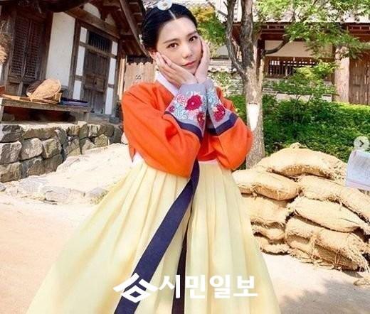 공개된 사진속에서 박수아는 한옥을 배경으로 단아하고 고운 한복을 입고 포즈를 취하고 있다.