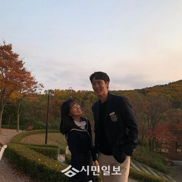 사진 속에는 교복을 입은 이재욱과 김혜윤이 서로를 보며 해맑게 웃고 있는 모습이 담겨 훈훈함을 자아냈다.