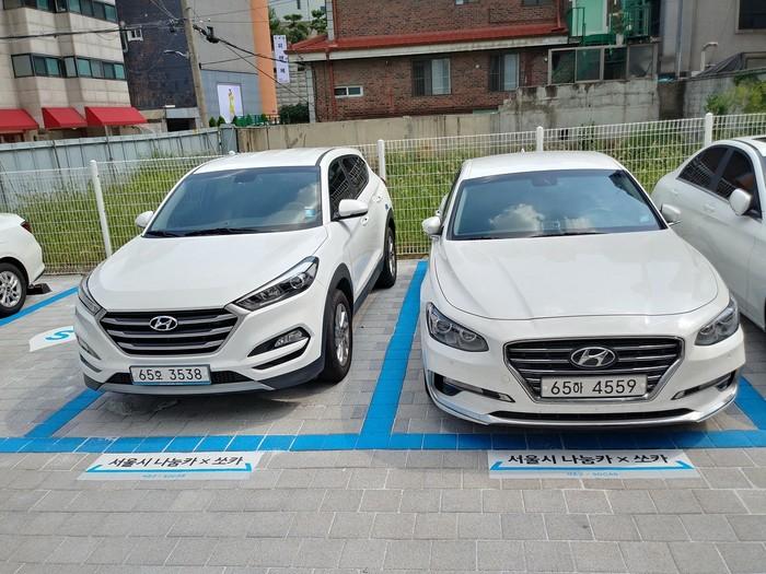 ▲ 전용 주차장에 주차돼 있는 '나눔카'. (사진제공=서초구청) |