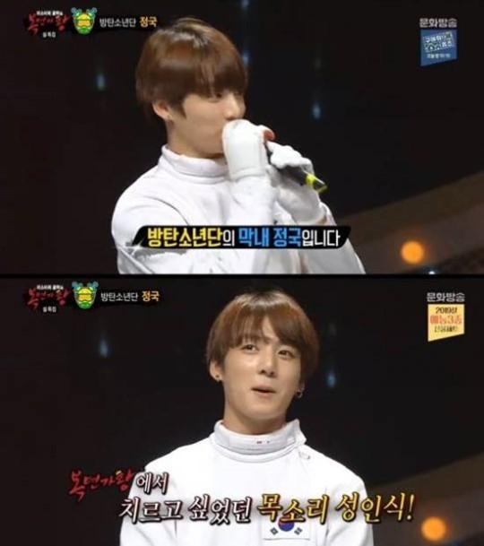 2016년 8월 '펜싱맨' 복면을 쓰고 아름답게 노래하는 정국의 모습이 공개됐다. 지금보다 많이 앳된 얼굴과 달콤하고 사랑스러운 목소리로 팬들과 대중의 마음과 귀를 사로 잡았다.