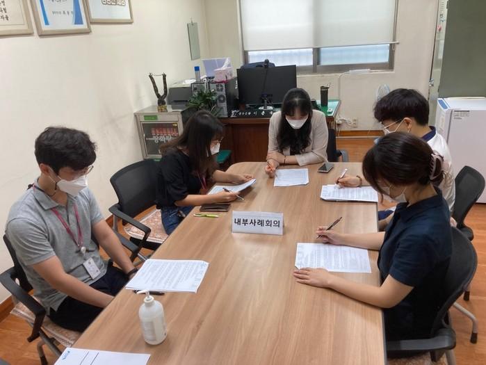 경기 동두천시 중앙동행정복지센터가 최근 내부사례회의를 열어 통합사례관리 제공 2가구를 회의 안건에 상정한 후 토의를 진행해 주거환경 개선 등 복지 욕구와 문제가 해소된 가구의 사례관리를 종결하고, 고령으로 모니터링이 필요한 노인은 지속적 서비스를 지원하기로 뜻을 모았다. 사진은 이날 회의가 진행되고 있는 모습. (사진제공=동두천시청)