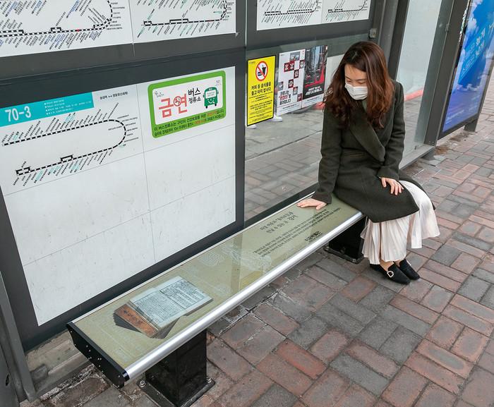 | ▲ 구청 버스정류장에 설치된 허준박물관을 디자인으로한 온열의자. (사진제공=강서구청) |