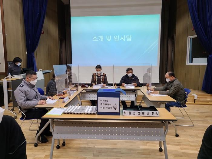경기 하남시는 지난 29일 미사2동 주민자치회 위원을 공개 추첨으로 선정했다. 30명 모집에 35명이 신청해 추첨을 실시했으며, 공정을 기하기 위해 별도의 관리위원회를 구성하고 추첨절차 전반을 진행했다. 사진은 온라인으로 참관하는 가운데 공개 추점이 진행되고 있는 모습. (사진제공=하남시청)