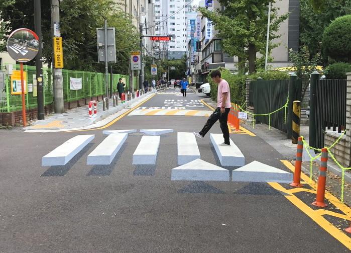 또한 횡단보도는 입체감이 살아있는 3D로 구현돼 자연스럽게 자동차의 감속을 유도하도록 설계됐다.