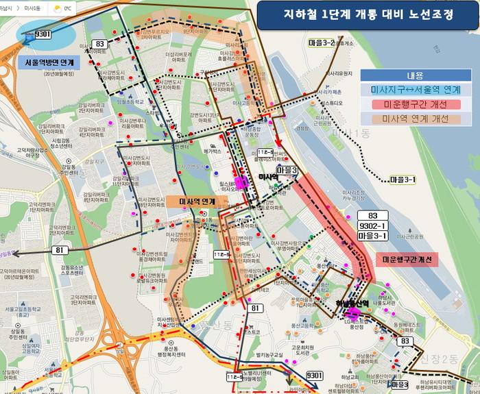 변경되는 노선은 시내버스 9301번, 112-5번, 81번, 83번 및 마을버스 3번, 3-1번, 3-2번 등으로 신설 지하철역과 연계 가능하도록 조정된다.