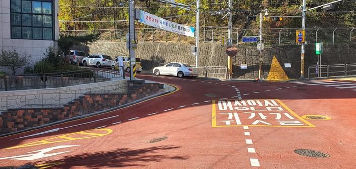 오랫동안 무허가건물이 점유하던 부분에 건물을 철거하고 ▲기존에 폭 4m에 불과했던 도로 40m 구간을 폭 6m 규모로 새롭게 확장했으며 ▲보행자 전용 계단(폭 2m, 길이 13m) 설치 ▲어린이보호구역 도로 포장(673㎡)을 병행했다.