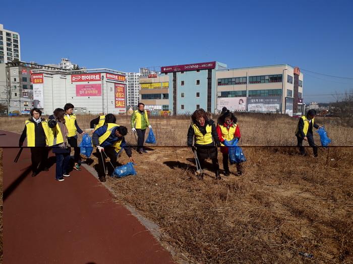 경기 이천시 증포동 민원봉사단은 20일 증포동 일원에서 환경정화활동을 전개했다. 증포동 민원봉사단은 고객만족 서비스를 위해 동행정복지센터 민원실에서 민원별 발급안내 등의 민원안내 봉사를 하고 있다. 사진은 쓰레기를 수거하는 모습. (사진제공=이천시청)