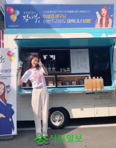 이성경은 자신의 SNS에 동영상 하나를 게재했다. 공개된 영상 속에는 이성경이 커피차 앞에서 포즈를 취하고 있는 모습이 담겼다.
