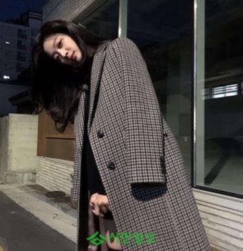 공개된 사진 속 조보아는 체크무늬 롱 코트를 입고 카메라에 포착되었다.