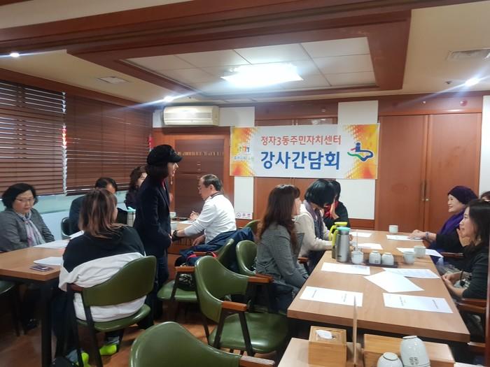 경기 수원시 장안구 정자3동 주민자치위원회는 지난 13·19일 양일간 ‘2019년 하반기 주민자치센터 간담회’를 개최했다. 이번 간담회에서는 38개 프로그램을 운영하는 강사 및 수강생 대표와 함께 주민자치센터 발전을 위한 의견을 나눴다. 사진은 지난 19일 참여자들이 이야기를 나누는 모습. (사진제공=장안구청)