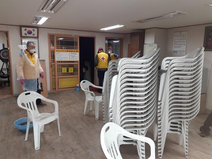 대한적십자사 경기도지사 이천구만리봉사회와 이천시자원봉사센터 12명의 봉사자는 지난 11일 한파 속에 설성면 노인회 청소 봉사를 실시했다. 이날 봉사자들은 화재로 인해 불편을 겪는 노인들을 위해 천정·바닥 등의 청소와 폐기물 처리하는 등 환경개선 활동을 했다. 사진은 봉사자들이 노인회 청소를 하고 있는 모습. (사진제공=이천시청)