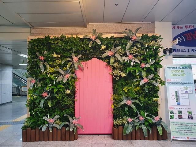 | ▲ 광주광역시 농업기술센터, 지하철 상무역에 식물 공기정화시스템인 ‘바이오월(Bio wall)’을 시범 운영 / 사진=광주광역시 제공 |