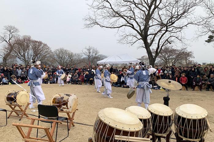 충남 서산시가 최근 해미읍성에서 설맞이 민속 한마당 행사를 성황리에 개최했다. 이날 행사에는 5000여명의 관광객이 방문한 가운데 먹거리, 민속 공예, 민속놀이 등의 체험과 함께 '뜬쇠예술단'의 공연이 펼쳐졌다. 사진은 예술단의 공연 모습. (사진제공=서산시청)