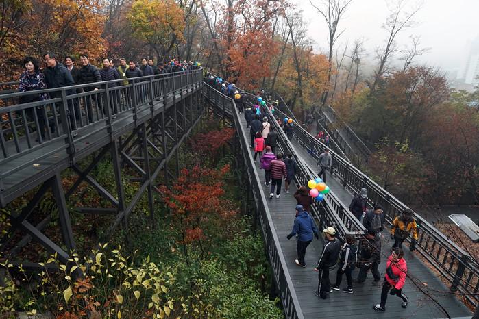 서울 동대문구는 최근 배봉산 둘레길에서 ‘구민과 함께하는 배봉산 둘레길 걷기’ 행사를 개최했다. 행사에 참가한 구민들은 배봉산 야외공연장에서 출발해 숲속도서관을 지나 다시 돌아오는 4km 순환코스를 완주했다. 사진은 구민들이 걷고 있는 모습. (사진제공=동대문구청)