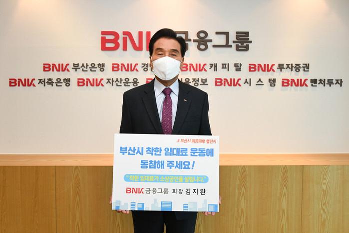 [시민일보 = 여영준 기자] BNK금융그룹 김지완 회장이 14일 지역의 나눔문화 확산과 소상공인과의 상생을 기원하며 부산시 ‘동고동락 챌린지’에 동참했다.