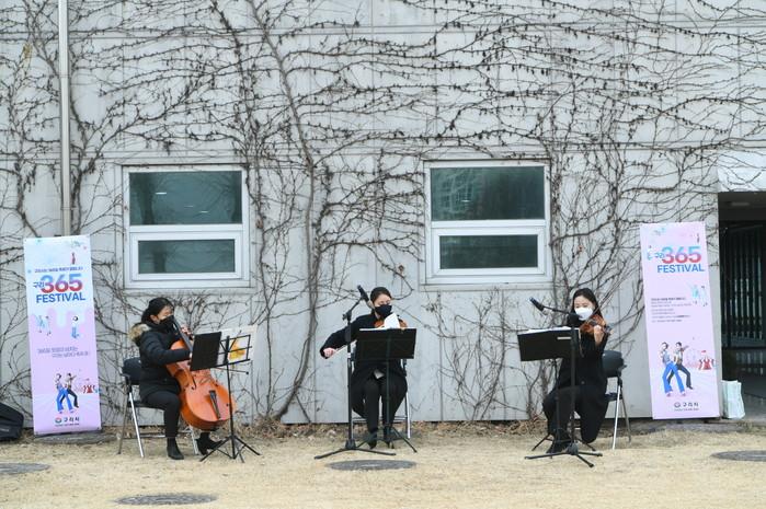 경기 구리시는 새해 ‘구리 행복 365 축제’를 운영한다. 축제는 다채로운 언택트(Untact) 행사와 소규모 공연 등을 통해 시민들이 1년 365일 더욱 쉽게 보고 즐기며 직접 참여할 수 있도록 기획됐다. 사진은 구리장자호수공원에서 진행된 작은음악회 공연 모습. (사진제공=구리시청)