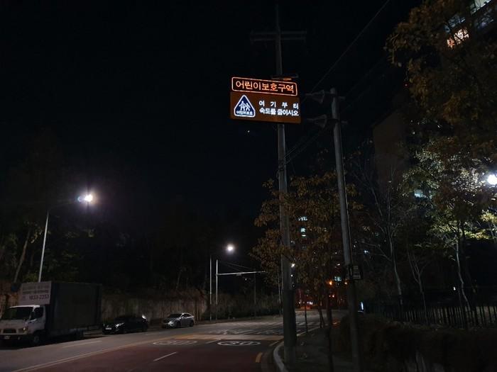 먼저 어린이보호구역내 안전표지, 노면표지 등의 낡은 교통안전시설물을 정비해 운전자가 어린이보호구역임을 쉽게 알아볼 수 있도록 했다. 또한 밤에도 식별이 가능한 발광형표지판을 설치했다.