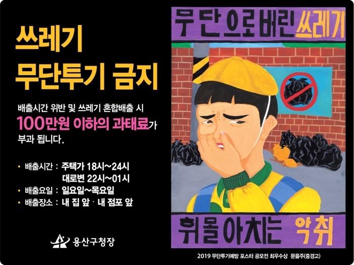 | ▲ 포스터 공모전을 통해 만든 쓰레기 무단투기 경고판. (사진제공=용산구청) |