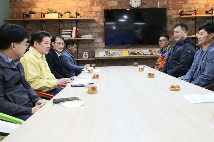 경기 안양시가 최근 시청 상황실에서 환경미화원들이 주축을 이룬 시청 공무직노동조합과 코로나19 극복을 위한 후생복지예산 긴급자금 전환 협약을 체결하고 노조로부터 성금 8300만원을 전달 받았다. 사진은 최대호 시장과 노조 관계자들이 의견을 나누는 모습. (사진제공=안양시청)