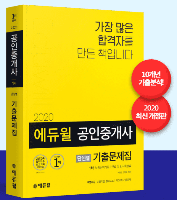 공인중개사 부문 1위를 차지한 ‘2020 에듀윌 공인중개사 단원별 기출문제집 1차’ 교재는 실제 시험을 경험하고픈 수험생, 중간 점검 또는 마무리 확인이 필요한 수험생을 위해 마련된 것이다. 법령이 개정된 부분은 문제를 개정된 내용에 맞게 변형해 학습의 효율성을 높였다.