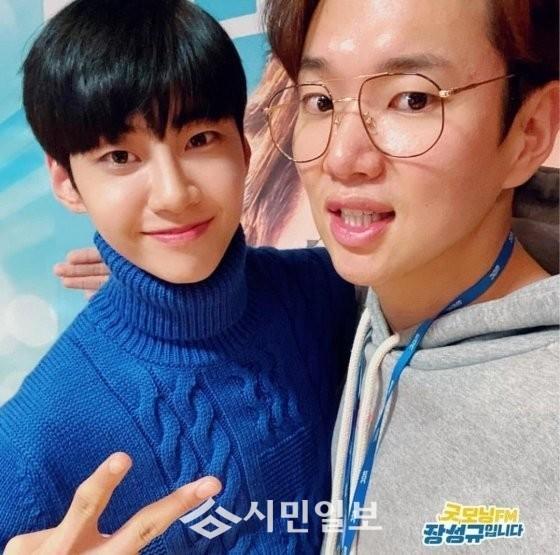 장성규는 자신의 인스타그램에 "굿모닝FM을 찾아준 첫 아이돌 #아기태양 #이진혁 #브이단 만나보니 더 응원하게 되네요"라는 글과 함께 가수 이진혁과 함께 찍은 셀카를 게재했다.