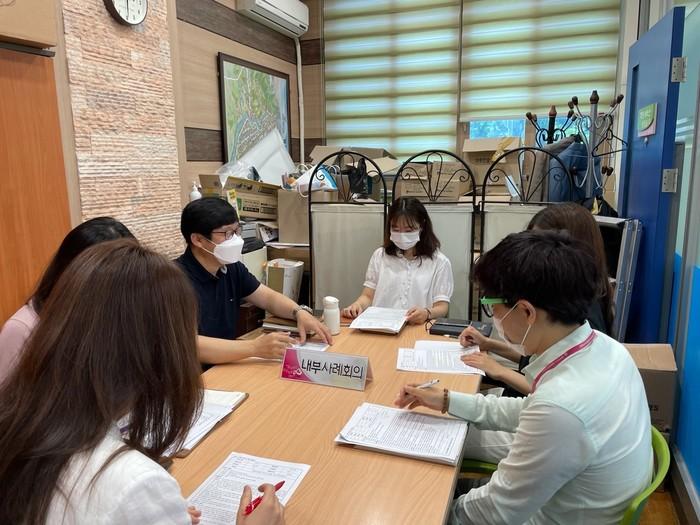 경기 동두천시 무한돌봄센터는 최근 내부사례회의를 열었다. 이날 회의에서는 뇌졸중으로 쓰러졌지만 돌봐줄 가족이 없는 한 주민에 대한 주변 이웃의 제보를 토대로 담당 사례관리사가 생활실태 등을 파악한 결과를 발표한 후 참석자들의 의견을 수렴했다. 사진은 이날 회의가 진행되고 있는 모습. (사진제공=동두천시청)