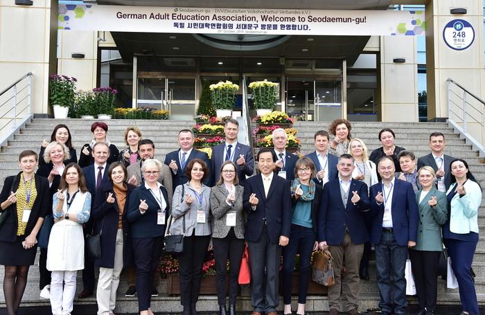 서울 서대문구는 29일 평생교육정책 벤치마킹을 위해 구를 방문한 우크라이나, 벨라루스, 몰도바 등 3개 나라 15개 도시 관계자 등 25명에게 평생교육 프로그램을 소개했다. 사진은 문석진 구청장(앞줄 오른쪽에서 여섯 번째)과 방문단의 기념촬영 모습. (사진제공=서대문구청)