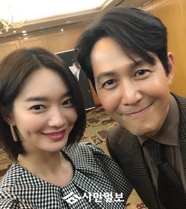 이정재와 초근접 셀카를 보이며 결점 없는 두 사람의 비주얼이 감탄을 자아낸다.