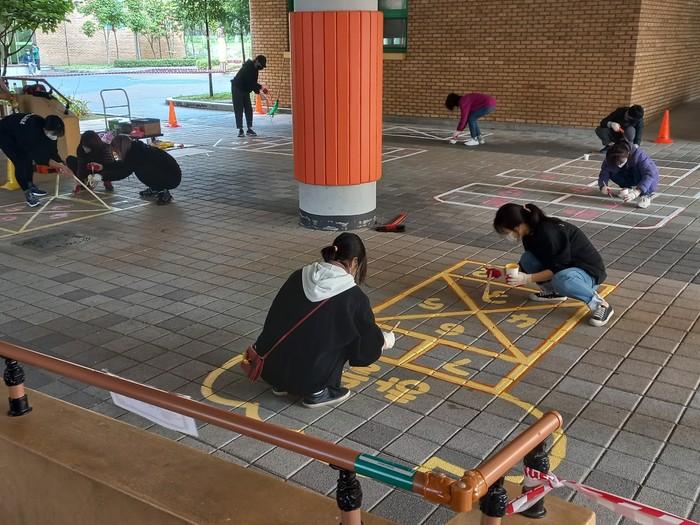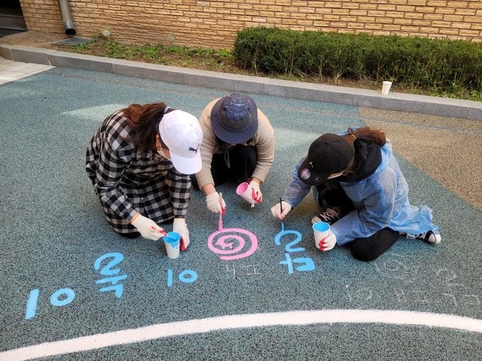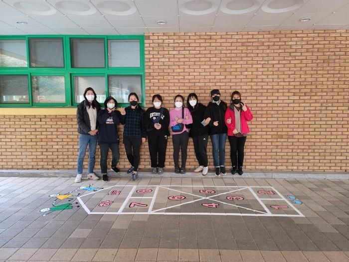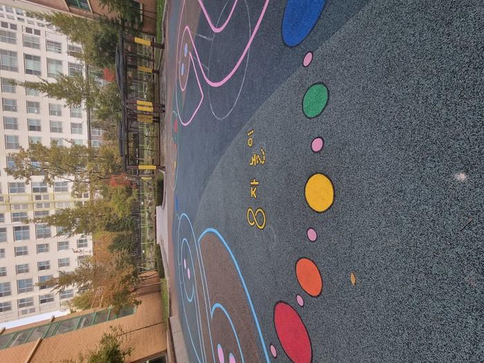 형형색색 그려진 바닥 놀이판을 보며 친구들과 신나게 쉬는 시간을 보낼 수 있게 되었다.