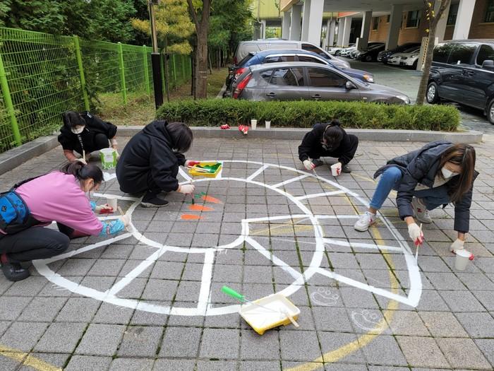 [고양=이기홍 기자] 도래울초등학교 학부모회에서는 10월 19일부터 21일까지수년간 보수하지 않고 사용하고 있는 운동장 전래 놀이 바닥 놀이판을 학부모의 재능기부로 보수 작업을 하였다.