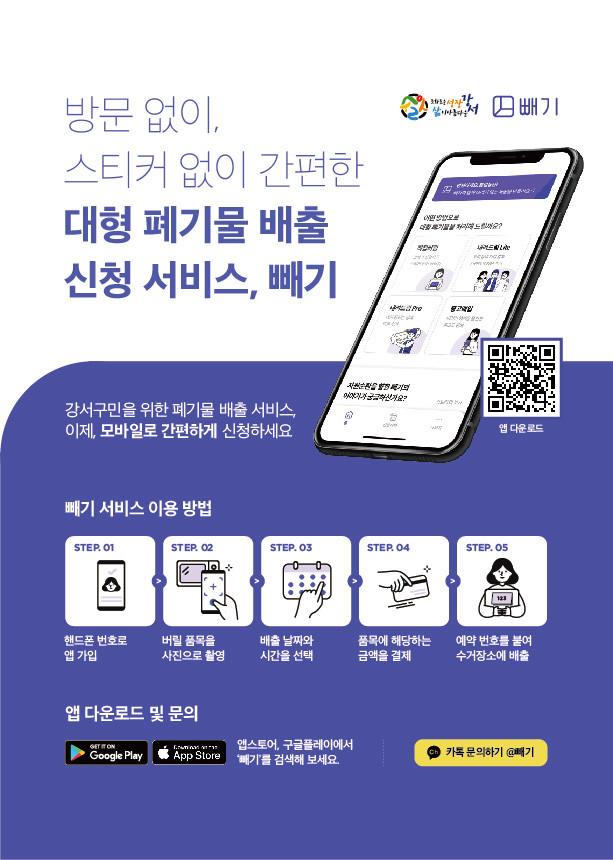 [시민일보 = 홍덕표 기자] 서울 강서구(구청장 노현송)가 이달부터 스마트폰으로 간편하게 대형폐기물을 배출할 수 있는 모바일 앱 ‘빼기’를 도입·운영한다.