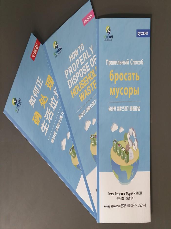 한국어를 기반으로 영어·러시아어·중국어를 병기했으며, 외국인이 알아보기 쉽도록 실제 종량제봉투 사진과 이미지를 넣어 제작했다.