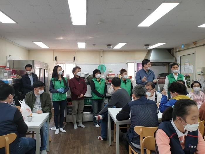 경기 안산시 상록구 사이동 새마을회는 최근 푸른동산보호작업장을 방문해 종사자 및 근로 장애인들을 대상으로 ‘사랑의 치킨’ 나눔 봉사활동을 펼쳤다. 이날 회원들은 직접 튀긴 치킨을 장애인 근로자들에게 대접하며 즐거운 시간을 보냈다. 사진은 사랑의 치킨 나눔 행사를 진행하고 있는 모습. (사진제공=안산시청)
