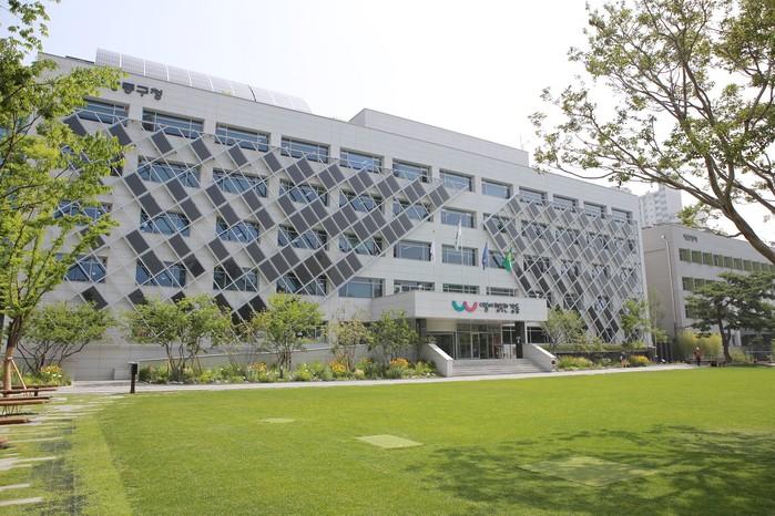 ▲ 강동구청사 건물일체형 태양광발전시스템 모습. (사진제공=강동구청) |