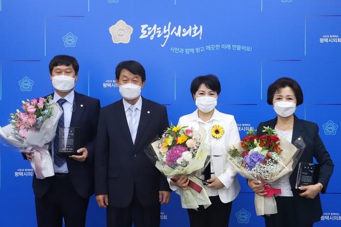 [평택=오왕석 기자] 평택시의회(의장 홍선의)는 2일 시의회 3층 간담회장에서 ‘제10회 경기도시군의회의장협의회 의정활동 우수의원’의 시상식을 갖고 선정된 3명의 시의원에게 표창을 전달했다.