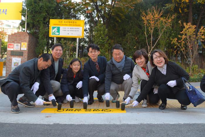 이 사업의 첫 번째 주자인 서울충무초등학교 노란발자국 길은 정문에서 퇴계로50길을 따라 장충공영주차장 부근까지, 정문에서 대로변인 퇴계로까지 학교 앞 보행로를 중심으로 조성돼 아이들의 안전한 보행을 돕는다.