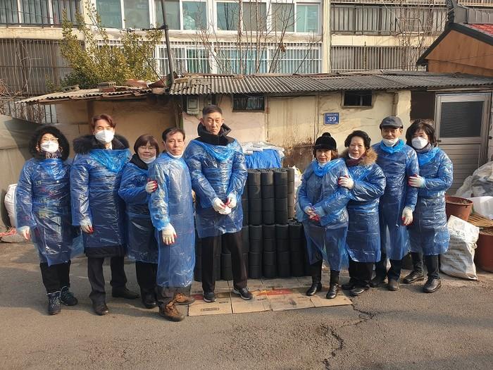 인천 중구 신흥동 지역사회보장협의체가 최근 동절기 저소득가구 난방 지원을 위한 '사랑의 연탄 나눔 사업'을 진행했다. 이날 협의체 위원들은 겨울철 연탄이 필요한 저소득가정 5가구에 각각 연탄 300장씩을 전달했다. 사진은 관계자들의 기념촬영 모습. (사진제공=중구청)