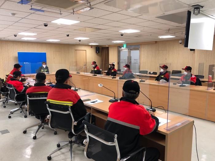 경기 수원시 팔달구는 1일 산불감시원 12명을 대상으로 산불감시원의 임무·근무요령·안전사고 예방 교육을 실시하고, 팔달산 등 3곳 산림 초소에 인력배치와 산불진화장비를 지급했다. 사진은 이날 산불감시원 교육이 진행되고 있는 모습. (사진제공=팔달구청)